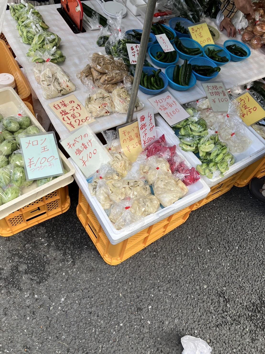 日曜市では、旬の野菜や果物、名産、お土産、雑貨、鉢植えのお花、観葉植物、果樹の苗木、刃物や工芸品物が販売されています。